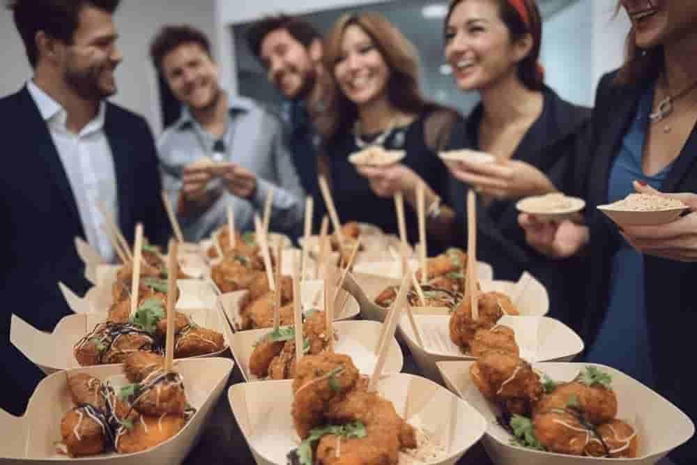 Delicious Food for Your Work Event Transform your office meetings and celebrations with our diverse menu options. From gourmet sandwiches and wraps to finger foods and hot buffets, we have everything to keep your team energized and satisfied. Ideal for corporate meetings, training sessions, and office parties.