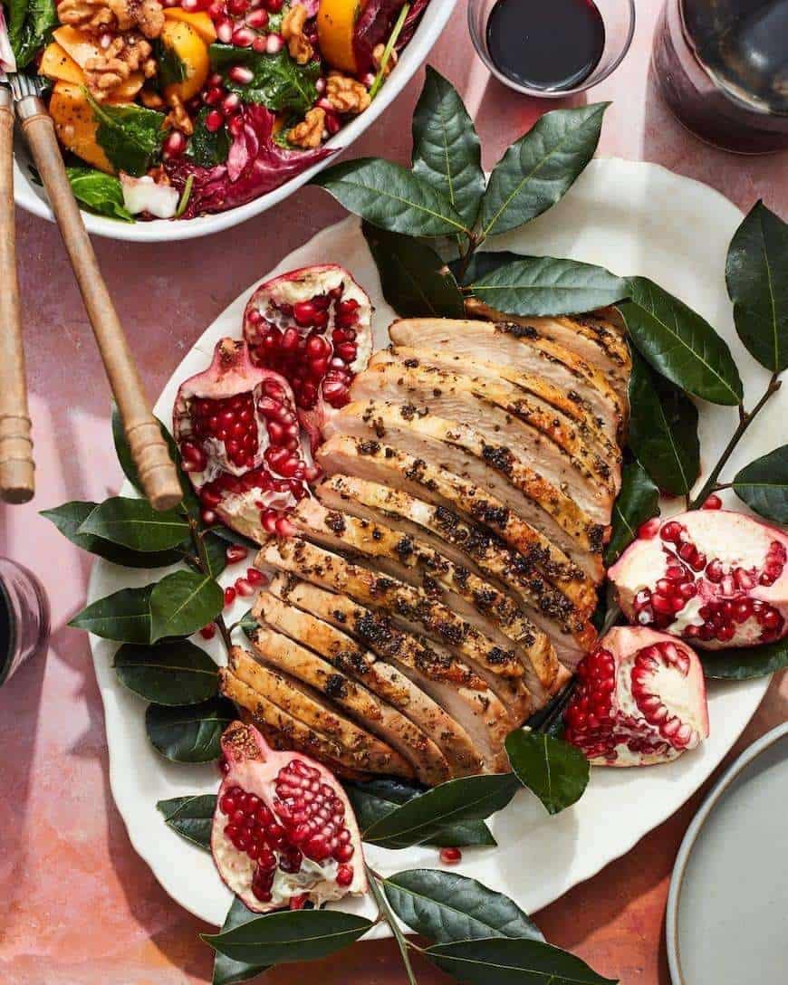 Succulent roasted chicken with pomegranate garnishes, perfect for private chef dining experiences in Australia.
